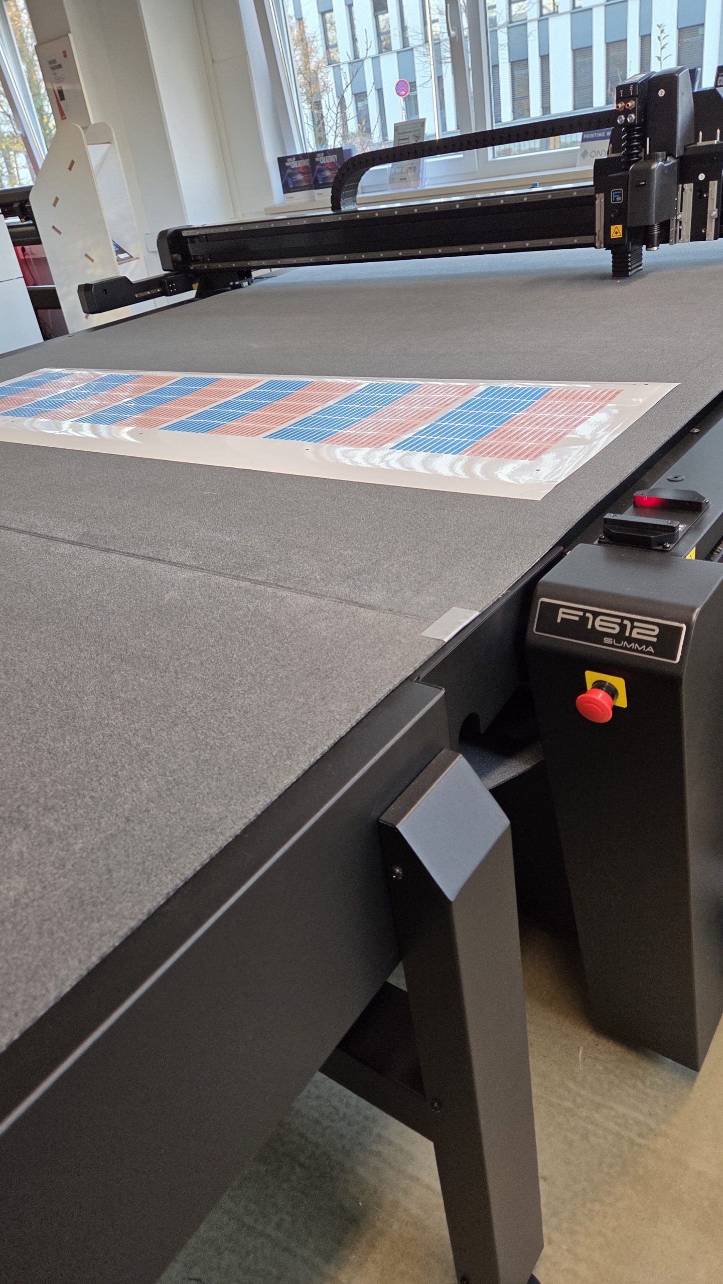 Die Steuerung und Automatisierung des gesamten Workflows erfolgt über die ONYX RIP-Software, die Farbmanagement, Konturschnittdaten, Warteschlangen und die Koordination der mehrstufigen Produktionsschritte übernimmt. Die Druckerzeugnisse werden dabei mit Passermarken oder Barcodes versehen, und eine entsprechende Schneidedatei wird erzeugt. Diese Schneidedaten werden anschließend in der Summa-Software GoSign für den Rollenplotter sowie GoProduce für den Flachbettplotter geladen und dort präzise verarbeitet.